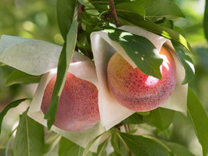 当園のラ・フランスは、生育初期に紙袋をかける有袋栽培方式を採用しています。無袋栽培に比べると、農薬の被ばくが少なく、安全でおいしい果実が収穫できることから、お客さまから高い評価をいただいております。