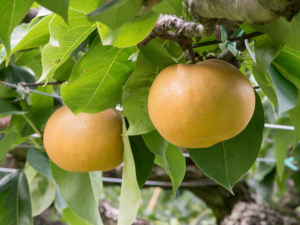 8月下旬(年によってはお盆明け)~9月上旬に収穫するなしの品種です。果肉は柔らかく酸味が少ないなしで、果汁が多く食味が良い品種です。