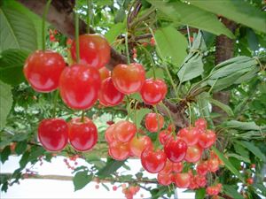 さくらんぼは「初夏の味覚」として人気が高く、たわわに実った鮮紅色の可愛い姿はひときわ目を引きます。